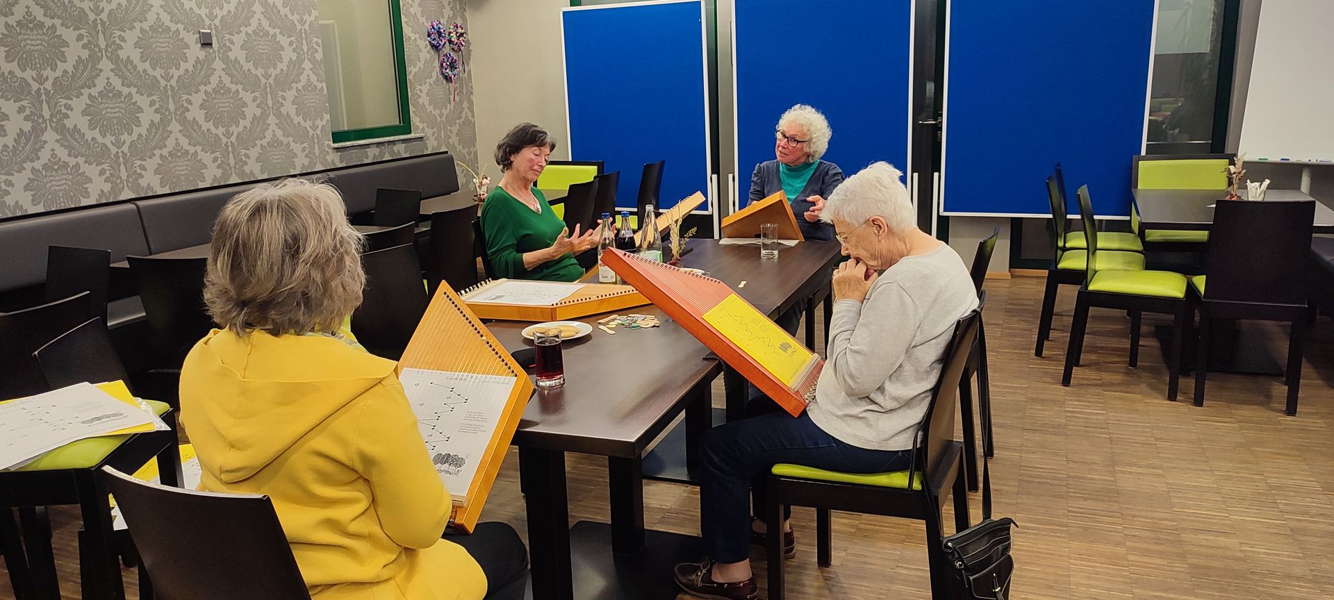 Klein, aber fein war die Gruppe, die sich zum Zauberharfenschnupperkurs im BürgerTreff von BhB getroffen hat. Unter der zertifizierten Harfenlehrerin und Lerntherapeutin Angelika Denkert konnten die Teilnehmerinnen verschiede Harfen ausprobieren und am Ende des Abends zusammen schon einfache Lieder spielen. Alle hatten große Freude und es hat sich wieder gezeigt, wie schön es ist gemeinsam zu musizieren. Spontan hat sich die Gruppe entschieden, sich einmal im Monat im Bürgertreff zu treffen, um weiter zu üben. Interessierte können sich bei der Bürgerlotsin Claudia Fotiou informieren. Tel.: 07581/5271377 Mail: info@bhb-bad-saulgau.de