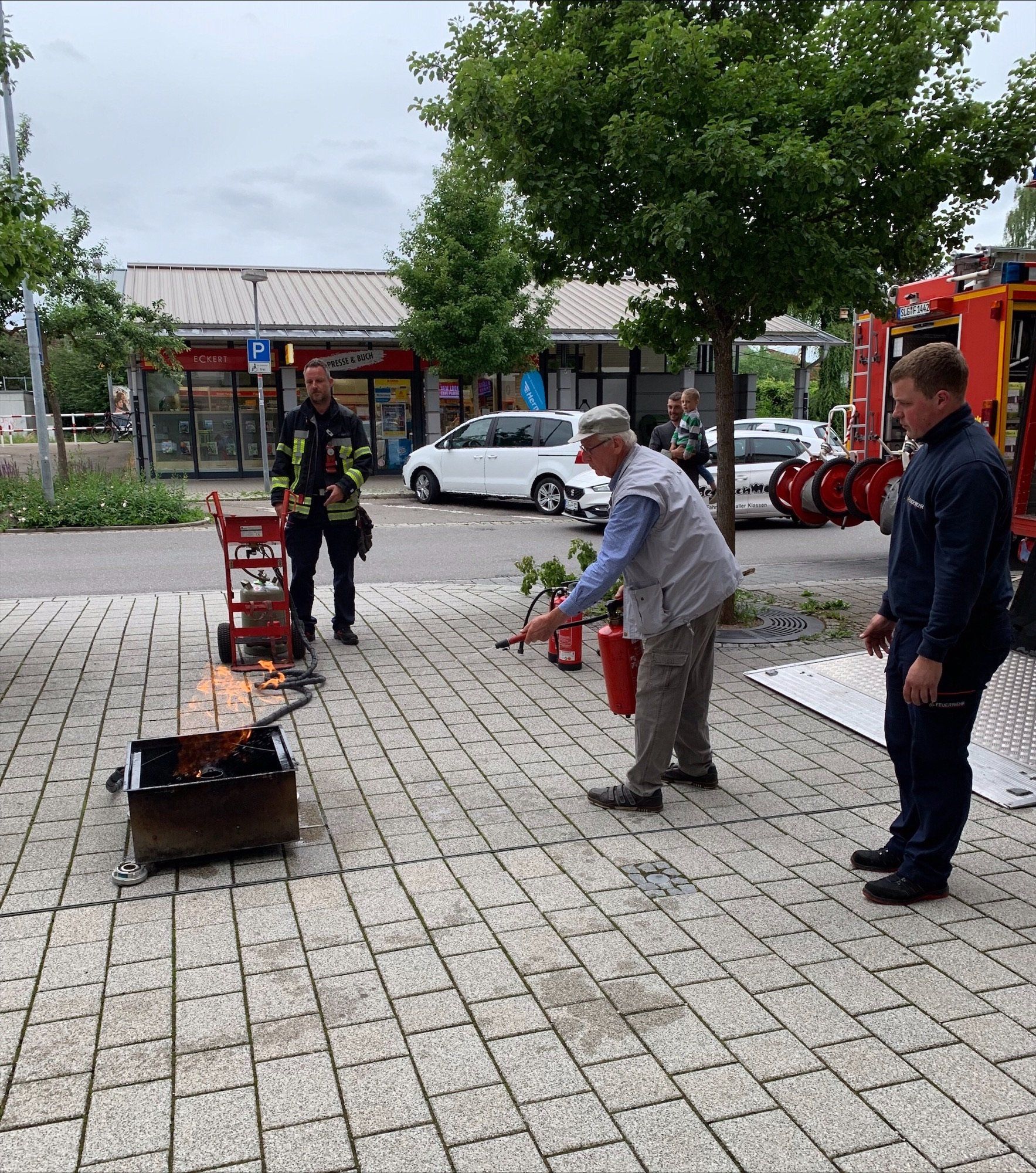 Vor den Räumen des BhB in der Karlstraße 7/1 führte die Freiwillige Feuerwehr Bad Saulgau eine Aufklärung zur Brandbekämpfung durch.