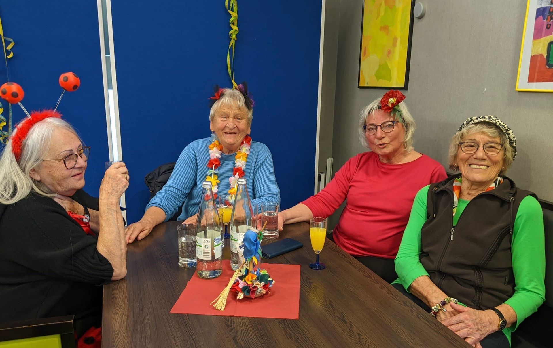 Am Freitag haben die Narren im Bürgertreff – Café Einzug gehalten. Bei ausgelassener Stimmung wurde der Fasnets-Freitag gefeiert. Die Ponderosa Guys sowie das Heiterkeit versprühende Duo Lene und Babett kamen zu Besuch und sorgten für eine gute Stimmung. Über 100 Fasnetsküchle, gebacken von Doris Gaismaier, fanden in kurzer Zeit Ihre Abnehmer.